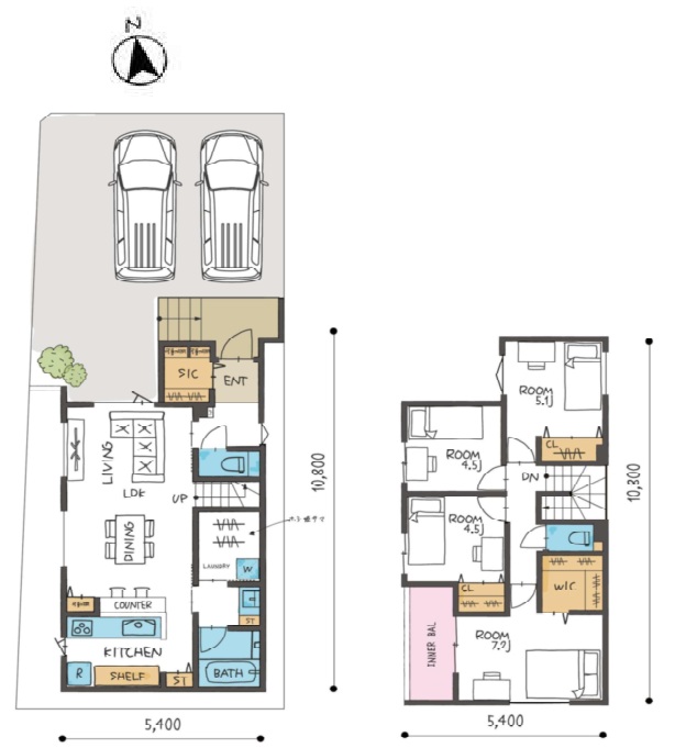 1階は LDKを中心に水回りがまとまった家事ラク動線。