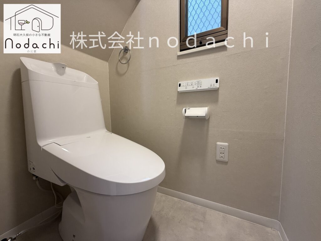 清潔感のあるホワイトカラーで統一されたトイレ空間。小窓が設けられているため、自然光と換気が確保でき、明るく快適にお使いいただけます。新品の温水洗浄便座付きで、機能面も充実。シンプルで落ち着いたデザインは、毎日の暮らしに心地よさをプラスしてくれます。