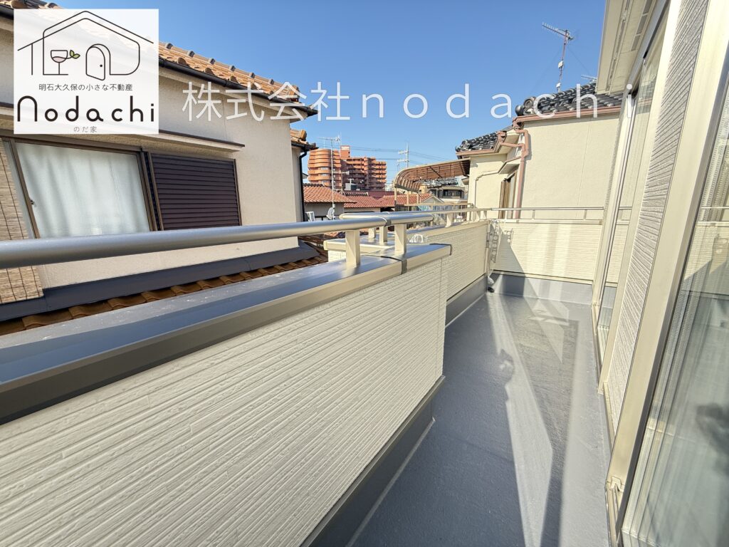 南側に面した陽当たりの良いバルコニーは、お洗濯物もカラッと乾きそうな開放感が魅力です✨奥行きと幅をしっかり確保したワイドな設計になっているので、たくさんのお洗濯物を干す際もスムーズに動けますね🏠空を広く見渡せるこの場所は、家事の合間にふと息を抜いてリフレッシュするのにもぴったりな空間です。2階の洋室から直接出入りできる動線の良さも、日々の暮らしやすさをさりげなく支えてくれます🌿