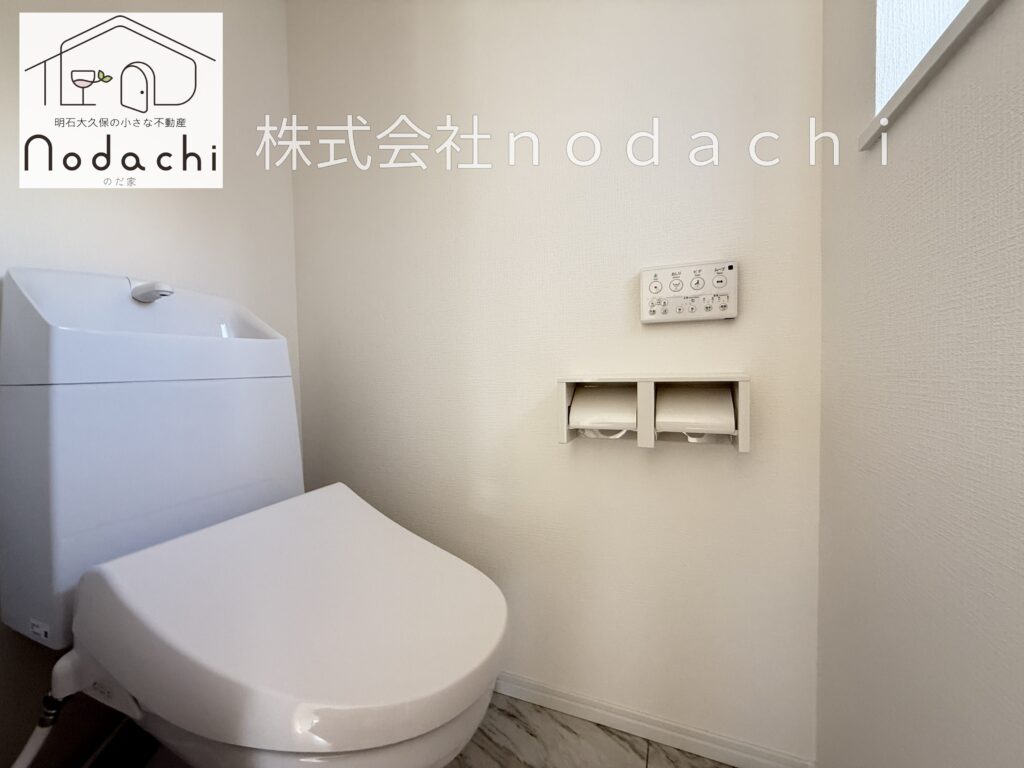 2階にも独立したトイレを完備しており、忙しい朝の時間帯や就寝時も階下まで降りる必要がなく快適に過ごせます✨1階同様に手洗い一体型のシャワートイレを採用し、スッキリとした空間に仕上げました🏠清潔感のある白を基調とした内装には小窓も付いているので、自然換気がしやすく明るい光が差し込むのも嬉しいポイントです🫧