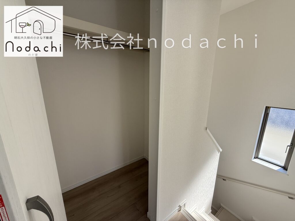 2階の階段を上がってすぐの場所にある、使い勝手の良い物入です。ハンガーパイプと枕棚が設置されているので、季節物のコートを掛けたり、掃除用具や日用品のストックを保管したりと、家族みんなで共有する収納スペースとして大活躍します🏠お部屋に持ち込みたくない大きな荷物もここに集約できるので、各居室をいつもスッキリと広く保てるのが嬉しいポイント。階段のすぐそばという配置は、1階からの持ち運びもスムーズで、日々の家事動線をさりげなくサポートしてくれます🌿