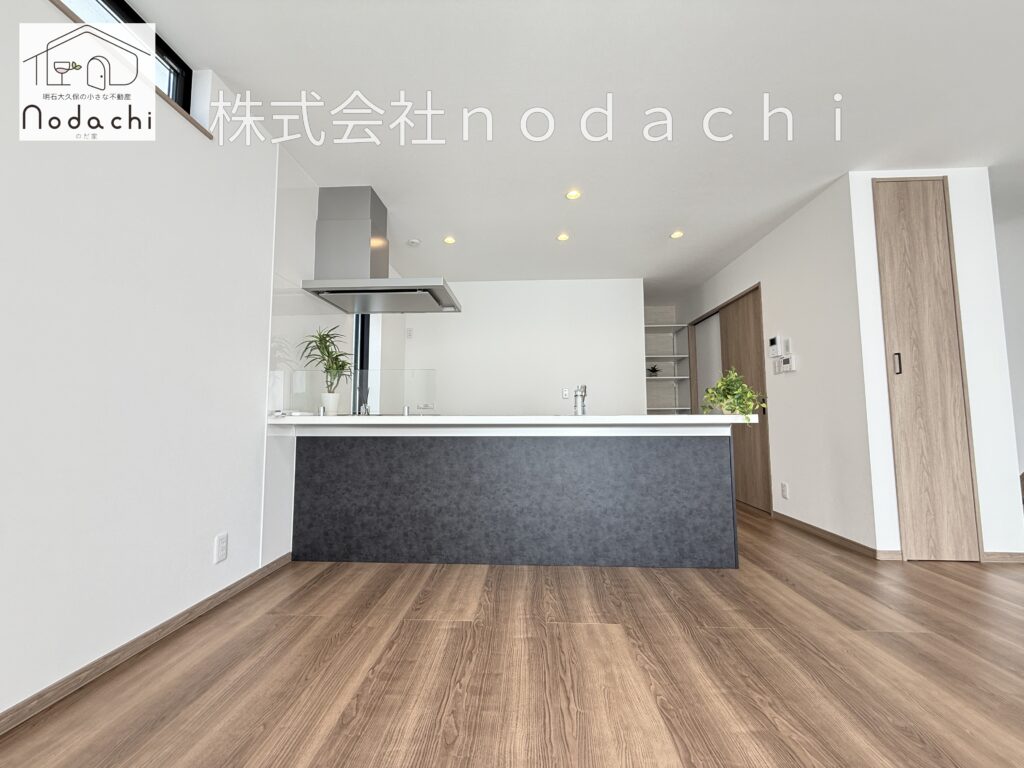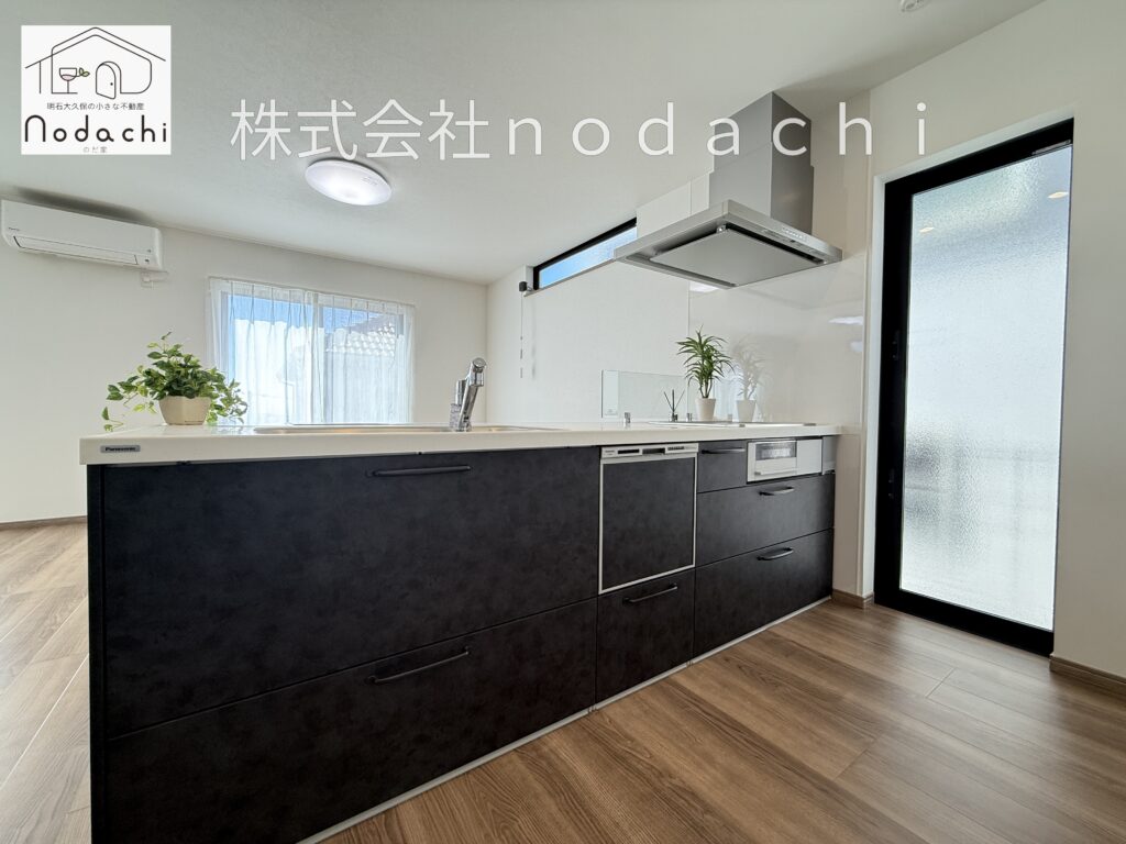 スタイリッシュなフルフラット対面キッチン✨ダークトーンの面材が空間を引き締め、高級感を演出します。食洗機付きで家事効率も◎🍽️広々としたワークトップは配膳や調理がしやすく、家族との会話を楽しみながらお料理が可能。勝手口もあり、換気やゴミ出し動線にも配慮された使い勝手の良いキッチンです🏡
