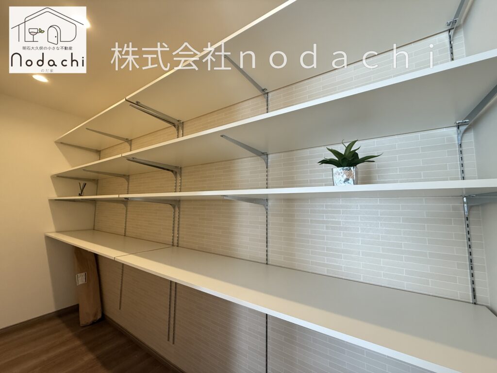 キッチン裏に設けられた大容量パントリー✨可動棚仕様で高さ調整ができ、食品ストックや調理家電、日用品までたっぷり収納可能です🍳🛒カウンター部分も広く、作業台や仮置きスペースとしても活躍。生活感を隠しながらすっきりと保てる、家事効率を高める嬉しい収納空間です🏡