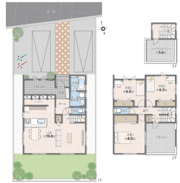 駐車スペース2台🚗🚗+お庭🌳+ゆとりある建物がちゃんと入るサイズ感です。」