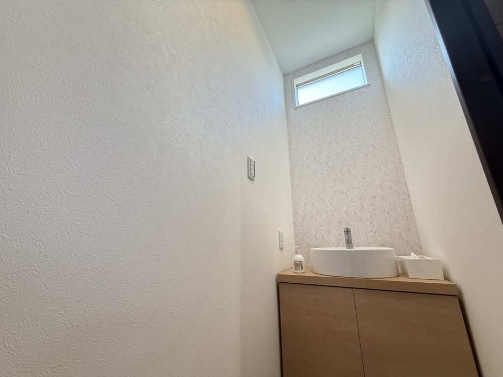 2階にも独立した手洗い場を設け、生活動線に配慮した設計😊