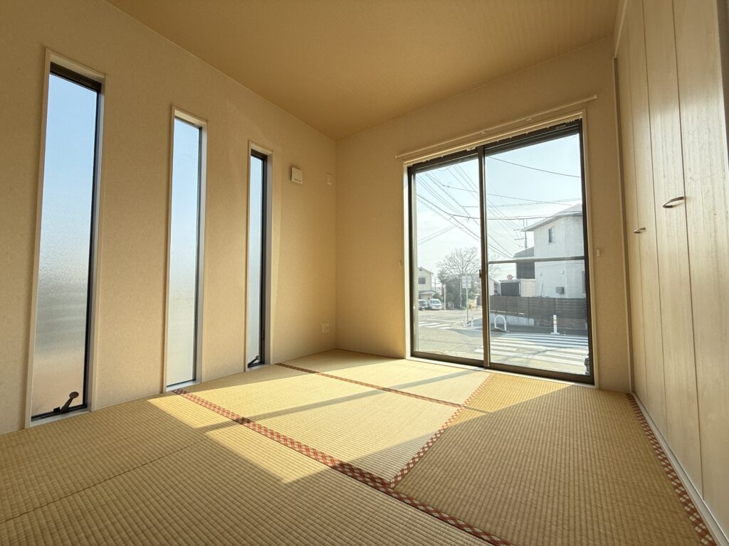 リビングに隣接した約4.5帖の和室は、明るく落ち着きのある空間😊