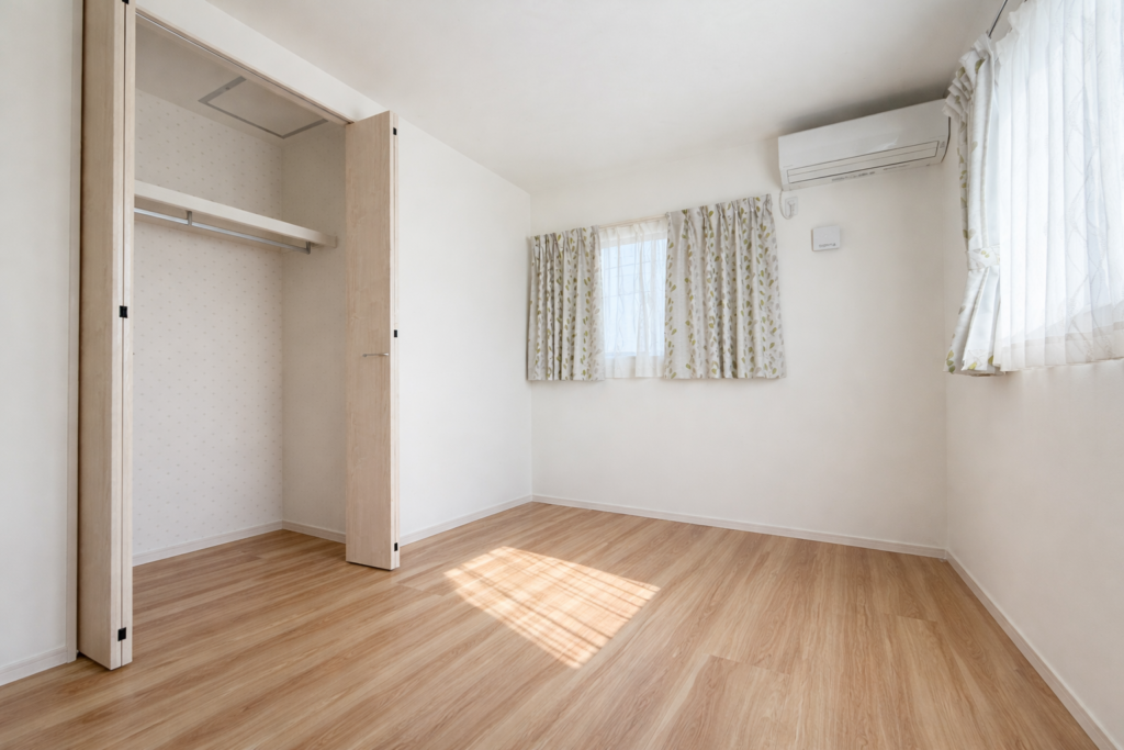 2面採光で明るく、風通しの良い洋室😊クローゼット付きで収納力もあり、子ども部屋や寝室として使いやすい広さです。