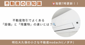 👨💼ノダチ「今日は不動産取引でよくトラブルになる“設備と残置物の違い”についてお話ししましょう!」 👨🦰お客様「設備と残置物 […]